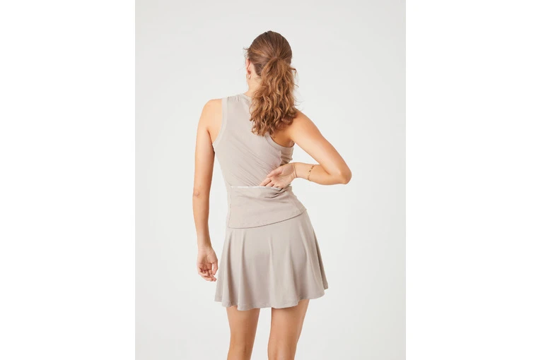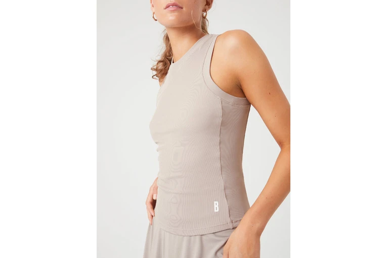 De Ace Rib Tank Pocket is een stijlvolle maar comfortabele tennistanktop met zakken, gemaakt van zacht gerecycled stretchpolyester in zachte ribstof. De top heeft een slanke pasvorm met een ronde hals en een bredere racerback voor bewegingsvrijheid, en een zak op de onderrug voor het handig opbergen van tennisballen. Met het iconische Borg-logo op de rug en een geborduurd B-logo op de heup. Het model is 173 cm lang en draagt maat S.