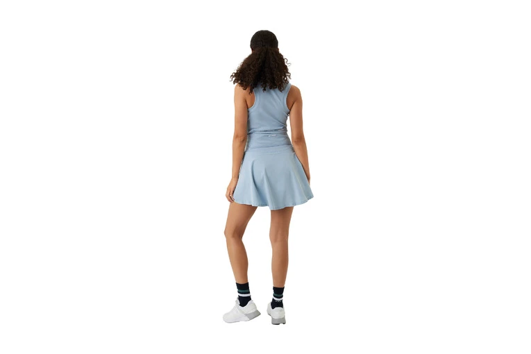 Het Björn Borg Ace Skirt Pocket is een stijlvolle tennisrok in zacht 4-weg stretchmateriaal van gerecyclede polyamide en gerecycled polyester. Deze korte stijl heeft een hoge taille met een bredere tailleband die aan de binnenkant afgewerkt is met powermesh voor extra ondersteuning. En natuurlijk mag het binnenbroekje ook niet ontbreken, ditmaal van zacht ribmateriaal voor extra draagcomfort. Een achterzak voor je tennisballen en een logostiksel op de zijkant ronden dit item helemaal af. Het model is 173 cm lang en draagt maat S.