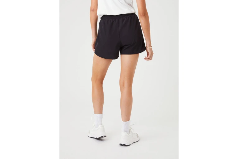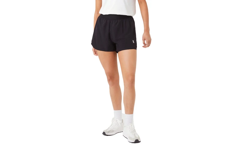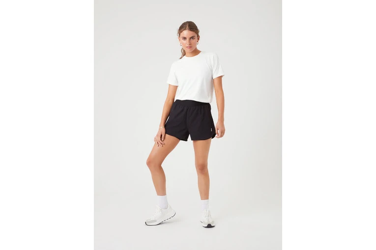Train in stijl met deze 2-in-1 sportshort met gerecycled geweven materiaal aan de buitenkant en een jersey binnenbroekje