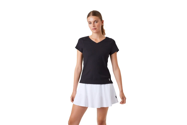 Het Ace T-shirt is een musthave tennisshirt voor de zomer dat uitgevoerd is in zacht high-performance piquémateriaal van gerecycled polyester. Dit slim-fit design is gestyled met een V-hals en gestreepte band aan de nek. De zijnaden zijn naar voren geplaatst voor een flatterende pasvorm, en dankzij de zijsplitten kun je ongehinderd op je spel focussen. Het model is 173 cm lang en draagt maat S.