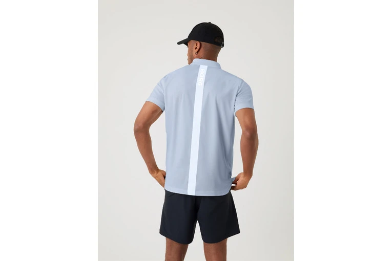 De Ace Polo is stijlvolle sportpolo met drie knopen uitgevoerd in high-performance piquemateriaal van zacht gerecycled polyester. Dit regular-fit langere model met geribde kraag is langer en een langere achterzoom, en is dus perfect voor oefeningen boven het hoofd en extra bedekking. De zijsplitten bieden optimale bewegingsvrijheid, terwijl de gestreepte band aan de nek zorgt voor de finishing touch. Het model is 188 cm lang en draagt maat M.