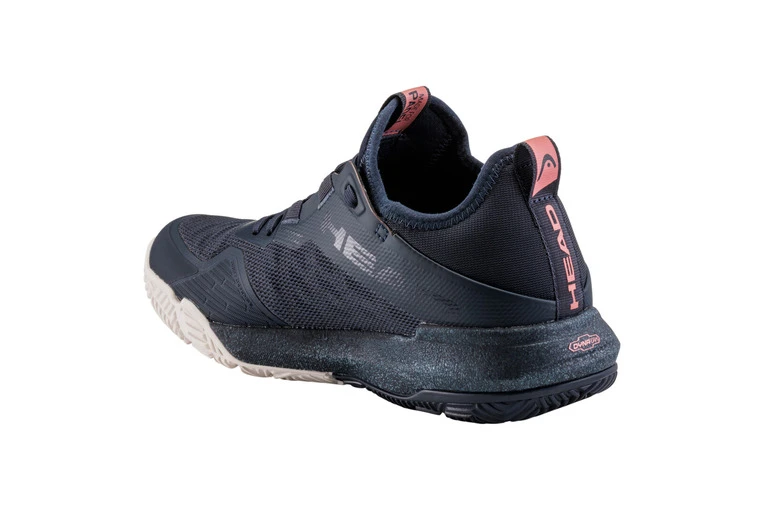 Een geavanceerd patroon van de zool, die is getest in samenwerking met MONDO, de offici?le grasmattenleverancier van de WPT, verbetert de grip in alle richtingen. Voor uitzonderlijk comfort heeft de schoen een volledig elastische sokconstructie en de middenzool bevat DynaFoam, gemaakt met kleine luchtcellen, dat licht van gewicht en zeer responsief is. De stabiliteit ontstaat door de combinatie van de TPU middenvoetschacht, het versterkte bovenstuk en de Lateral Control+-technologie. Om je voet koel te houden heeft de MOTION PRO PADEL WOMEN een ademend mesh en een geventileerd koelingssysteem voor de middenvoet. Het opvallende ontwerp, met een groot HEAD-logo, draagt bij aan de moderne aantrekkingskracht van de schoen.