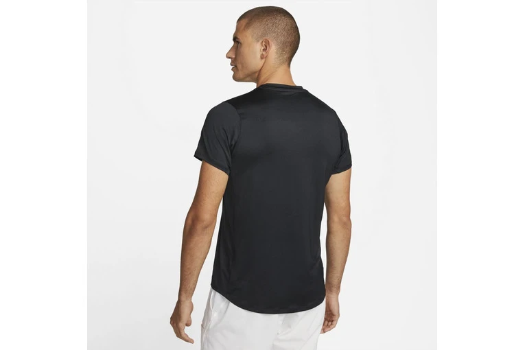 De NikeCourt Dri-FIT Advantage top is gemaakt van elastisch, ventilerend materiaal met minstens 75% gerecyclede polyester vezels en is ideaal voor snelle, felle wedstrijden. Dankzij de hybride halslijn heb je de look van een V-hals met het comfort van een top met ronde hals.
