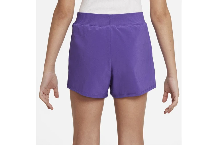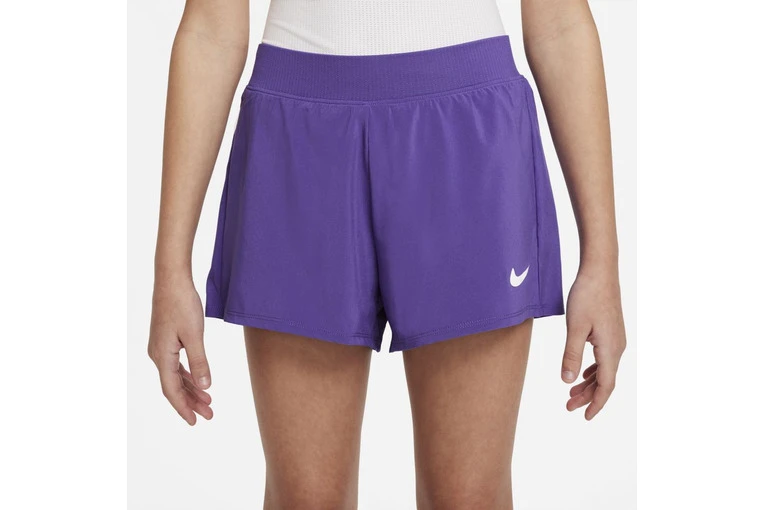 Domineer op de tennisbaan in de NikeCourt Dri-FIT Victory shorts. Het design is gericht op bewegingsvrijheid, met superelastisch materiaal en een enigszins schuine zoom zodat je comfortabel kunt sprinten en sliden.