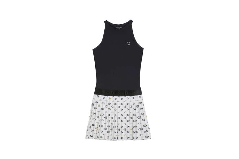 Een mouwloze tennisjurk met een vrouwelijke slanke pasvorm.