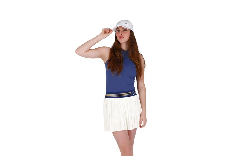 Een tenniskleedje zonder mouwen met een vrouwelijke slanke pasvorm.