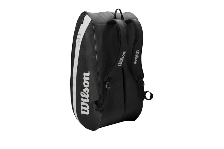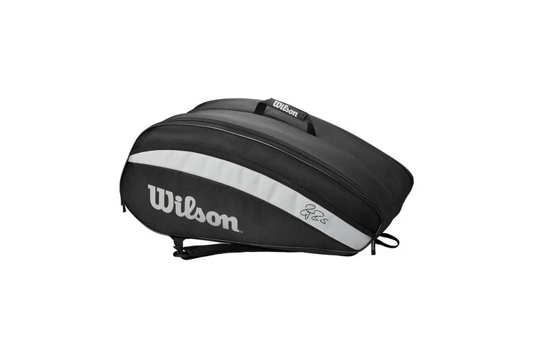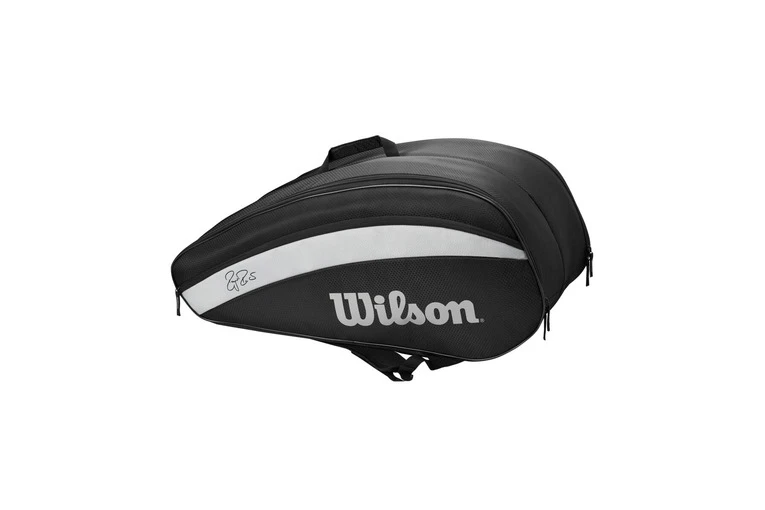 De tas heeft met zijn mooie zwarte design met grijze accenten een subliem uiterlijk. Het grijze logo aan de zijkant en de handtekening van Roger Federer maakt de tas dan ook helemaal af. Het heeft twee hoofdcompartimenten die in totaal voldoende ruimte bieden voor maximaal twaalf tennisrackets. De ruime compartimenten zijn ook uitermate geschikt om bijvoorbeeld kleding of schoenen in op te bergen. Daarnaast beschikt de tas over een accessoirevak met ritssluiting waar je gemakkelijk en veilig kleine benodigdheden in op kunt bergen.
